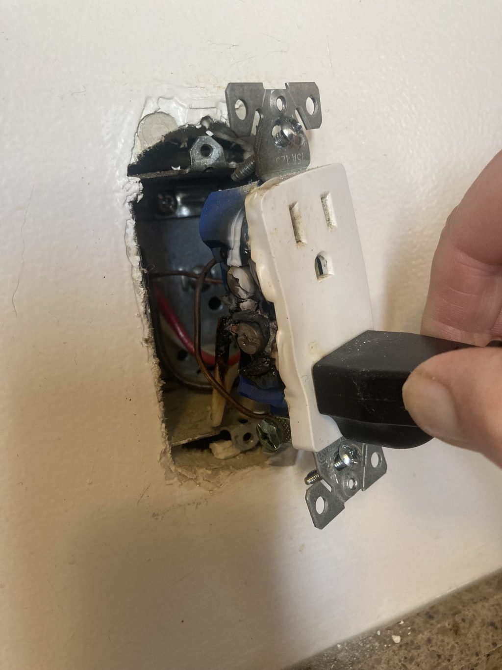 and the outlet begins to melt and blacken.